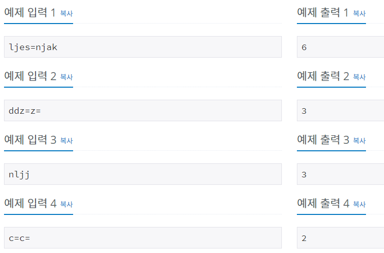 입력으로 주어진 단어가 몇 개의 크로아티아 알파벳으로 이루어져 있는지 출력한다.