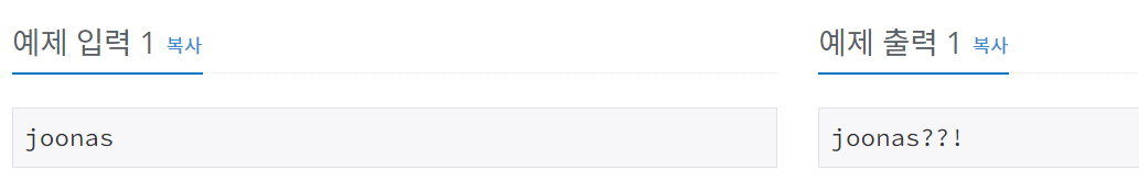 입력받은 문자열에 ??! 를 더해서 출력해준다.